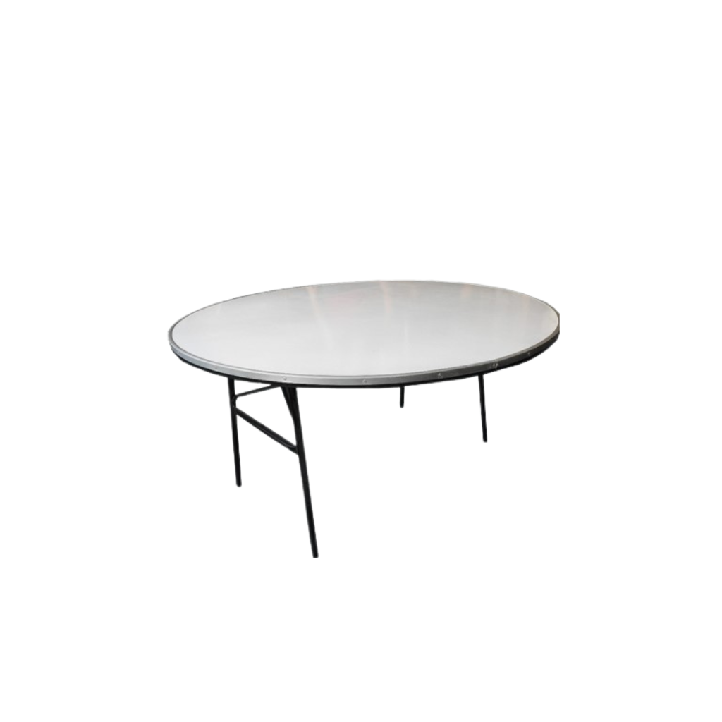 Mesa tablón redondo de 150 cms fabricado en abs reforzado color blanco patas plegables en acero.