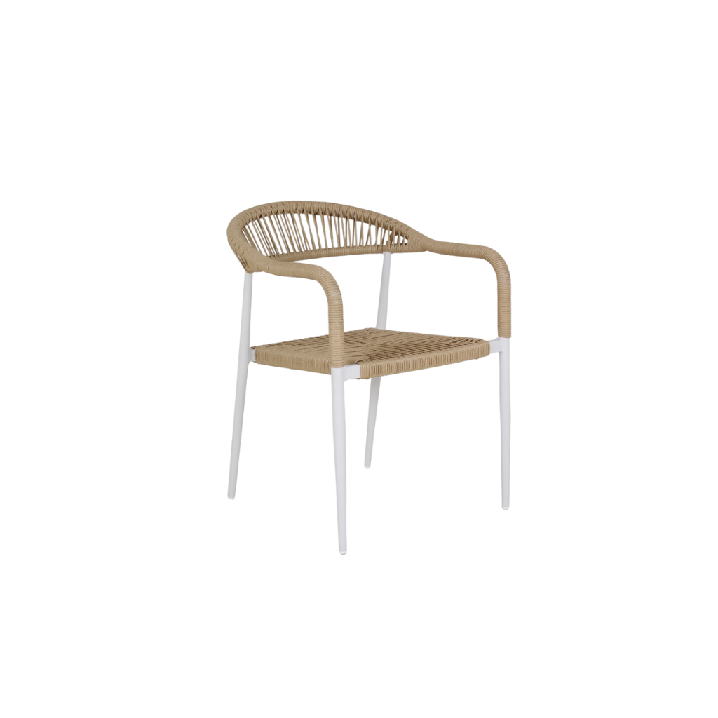 Silla Huatulco estructura de aluminio tejido sintético, uso interior y exterior.