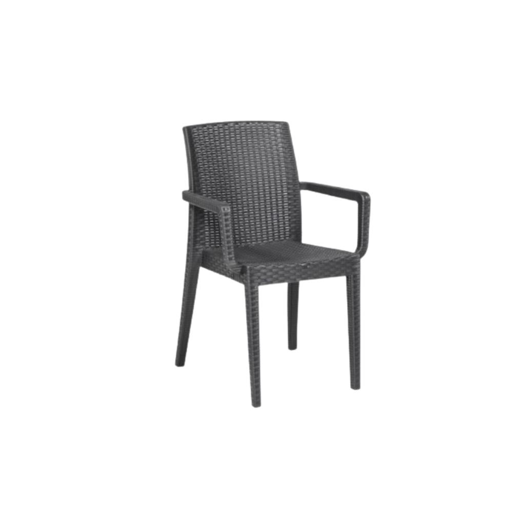 Silla siena con brazos en resina de máxima duración, color grafito uso interior y exterior.