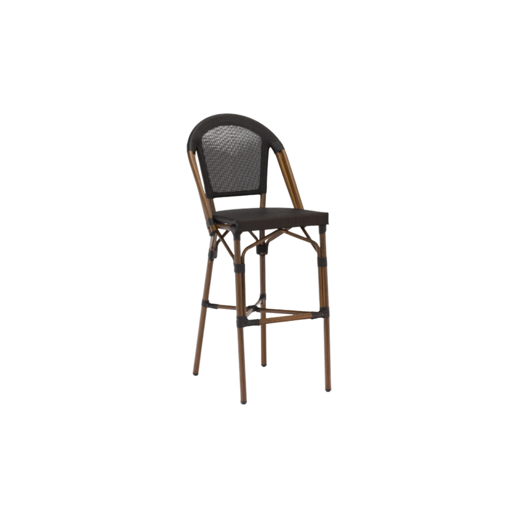 Taburete Mod. Diva estructura en aluminio imitación caña con asiento y respaldo en textilene, apilables